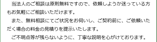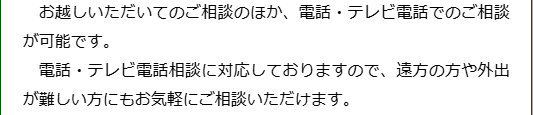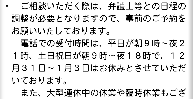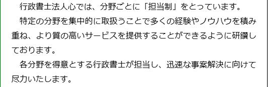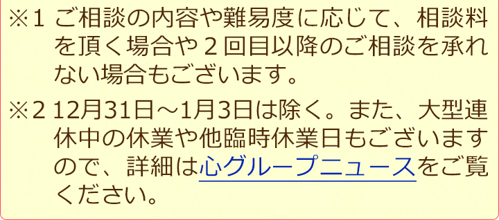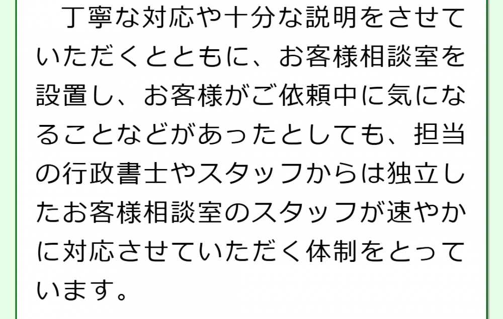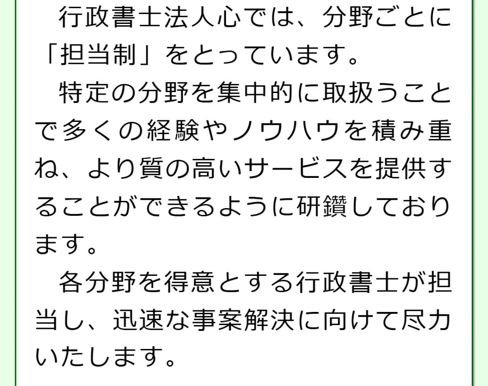 行政書士法人心の業務内容 相続手続き ビザ・在留資格 後遺障害 受付時間 平日 9時~21時、土日祝 9時~18時 夜間・土日祝の相談も対応します (要予約) 所在地 〒453-0015 愛知県名古屋市中村区椿町18-22ロータスビル4F 0120-2403-39 お問合せ・アクセス・地図